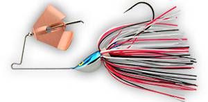 Спиннербейт представляет собой проволочную рамку, изогнутую коромыслом. На одном конце находится крючок с оперением — своеобразной юбкой из силиконовых нитей, а на другом располагаются 1 или 2 лепестка, свободно вращающихся при движении приманки.