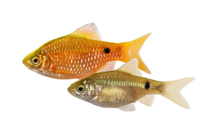 Половой диморфизм у огненных барбусов выражен сильно, и определить пол рыб не составляет труда: