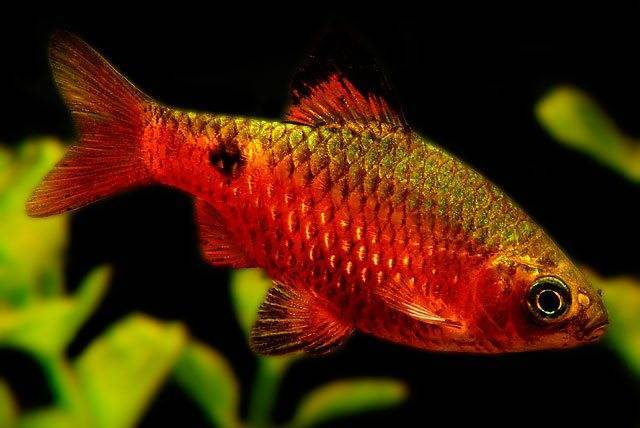 Вишневого барбуса предпочтительнее содержать в видовых аквариумах, заселяя группами по десять особей или чуть более