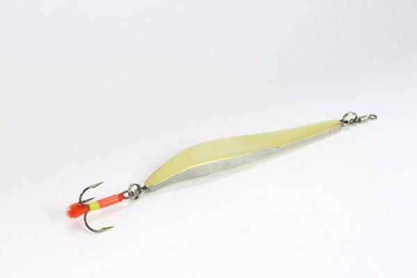 Эти «наживки» должны подвергаться постоянному движению. Рекомендуется постоянно менять движение рук: водить улочку из стороны в сторону, вперед — назад, по дуге и так далее. Выполняется из тех же материалов, что и предыдущие. Вес — 7 грамм.