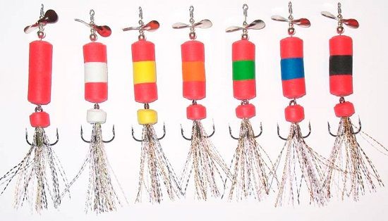 Первый сегмент у подобной приманки заменяется на специальную конструкцию с вращающимся лепестком в форме пропеллера.