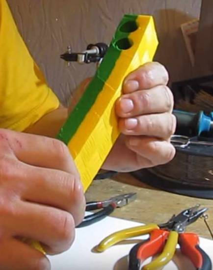 - Вставить получившуюся конструкцию в пенополиуретановую заготовку.