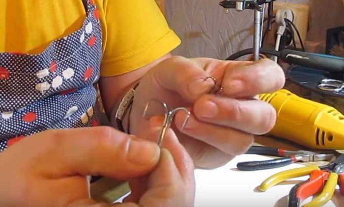 - Сделать на конце отрезка нержавеющей проволоки длиной 3–4 см скрутку, образующую маленькую петлю.