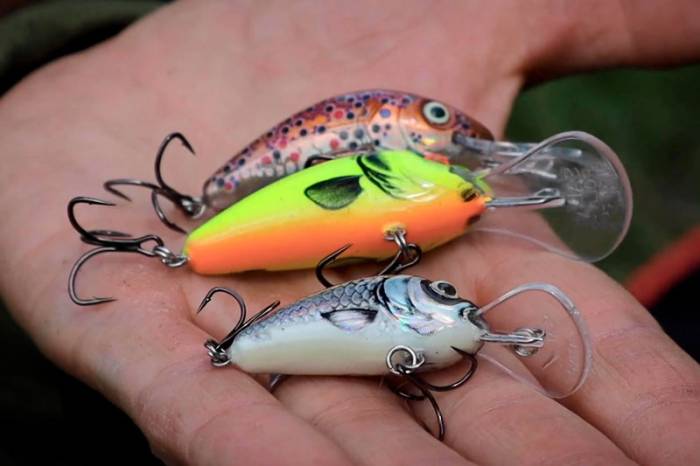 В качестве искусственных приманок можно использовать «вертушки» (блесны с интенсивно вращающимся лепестком) или кренки (разновидность воблера небольшого размера). При выборе кренков лучше отдавать предпочтение фэтам: небольшим округлым приманкам, имитирующим насекомых.