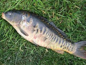 Зеркальный. У такого карпа крупная неоднородная чешуя, которая располагается отдельными участками и рядами. Самая главная примета, что она располагается по спине от головы до хвостовой части. Встречаются зеркальные карпы реже, чем обыкновенные.