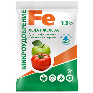 Железо занимает одно из ведущих мест среди всех микроэлементов для растений. Оно является гарантом своевременного биосинтеза хлорофилла и надёжным защитником от разных заболеваний в том числе и от хлороза. Способствует правильному развитию, вегетации и активации всех жизненных процессов, которые обеспечивают полноценный рост растений.