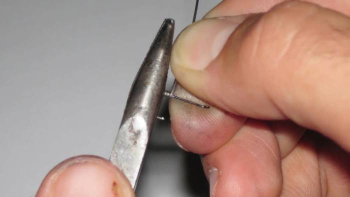 Спустя несколько секунд после прокаливания металл остывает. Ушко и верхняя часть загиба легко выравнивается плоскогубцами. Но прежде чем приступить к намотке, стоит запомнить, что попытка будет всего одна, ибо вольфрамовая проволока очень ломкая.