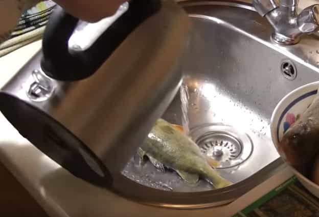Основным инструментом в данном случае будет служить самый настоящий кипяток. В общем рыбу нужно ошпарить кипятком.