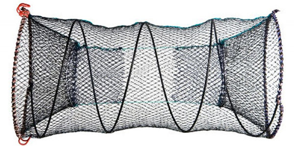 Ловушка по типу верши годится и для ловли раков. Она представляет собой обтянутый сеткой цилиндр из металлических колец, в котором имеются два торцевых входа. В сложенном виде эта конструкция практически не занимает места.