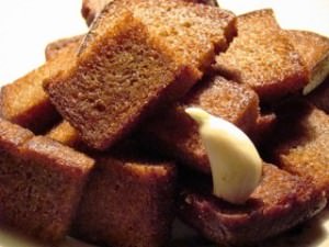 Для ее приготовления используют свежий ржаной хлеб. В нем делают углубление, которое заполняют предварительно растертым чесноком. Чтобы аромат начинки быстро распространился в воде и сохранился на долгое время, ее потребуется достаточно много.