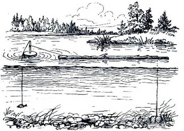 Береговая ловля позволяет забросить несколько снастей в перспективные места. Каждую из них можно закрепить к ветвям деревьев или к кустам и оставить на ночь. А утром останется достать снасти и радоваться улову.