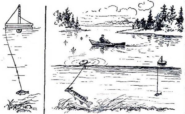 Устройство кружка очень похоже на устройство жерлицы. В обоих случаях живец насаживается на крючок и, свободно плавая по водоему, привлекает хищника. Их отличие в том, что кружок нужно вытаскивать, подсекая добычу, уже при первых поклевках.