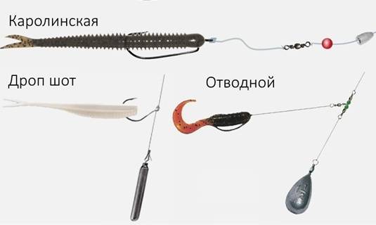Помимо стандартной конструкции, когда к леске привязывается поводок с приманкой, существует еще несколько вариантов: