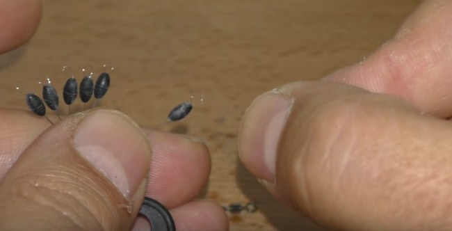 Чтобы крючок свободно скользил и не убегал далеко от балды, его фиксируют стопорами.