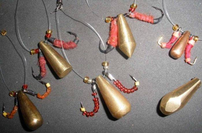- снасть изготавливается с применением бронзового, латунного или медного груза. Замечено, что такие грузила издают звук, привлекающий рыбу;