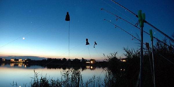 С удилищем. Для удилища нужно установить подставки, ослабить фрикционный тормоз катушки, подготовить колокольчик или светлячок (либо любой другой сигнализатор, можно сделанный своими руками).