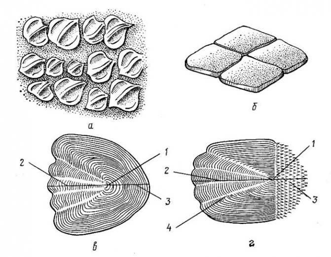 - Если посмотреть на пластины под микроскопом, то можно увидеть не только кольца, но и различные впадины и валики.