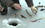 Затем из широченной, но не сквозной лунки удаляется крошево льда и с одного из краев продолговатой полости во льду пешней или ножом пробивается лед с таким расчетом, чтобы через пробой не смог проскользнуть пойманный для насаживания на зимние жерлицы живец.