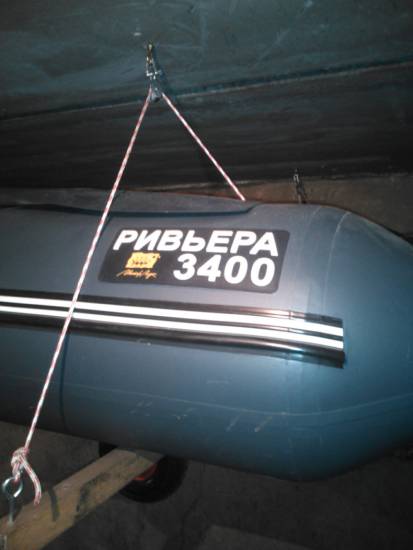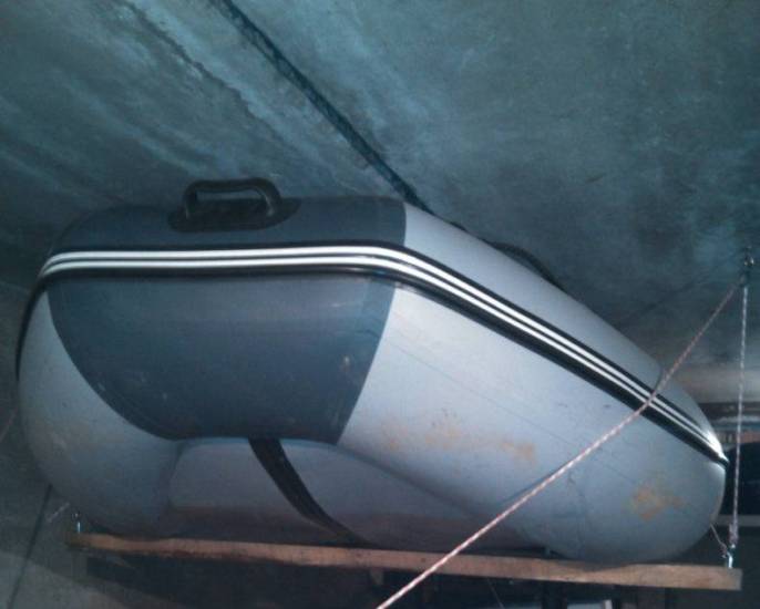 - лучше всего подвесить лодку к потолку в целях экономии места и предотвращения порчи грызунами;