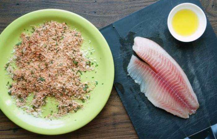 Чтобы блюдо получилось максимально аппетитным, необходимо правильно подготовить его главный ингредиент. Если вы приобрели свежую рыбу, сделайте из неё филе: удалите голову и очистите мясо от костей. По желанию порежьте тилапию на порционные куски, хотя многие предпочитают готовить её цельными кусочками. Обязательно удалите лишнюю влагу, для чего промокните рыбу бумажным полотенцем, в противном случае блюдо получится чересчур водянистым.