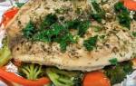 - Выложить рыбу на поднос аккуратно. Оформить зеленью, лимоном и свежими овощами. Подать с рисом или отварным картофелем.