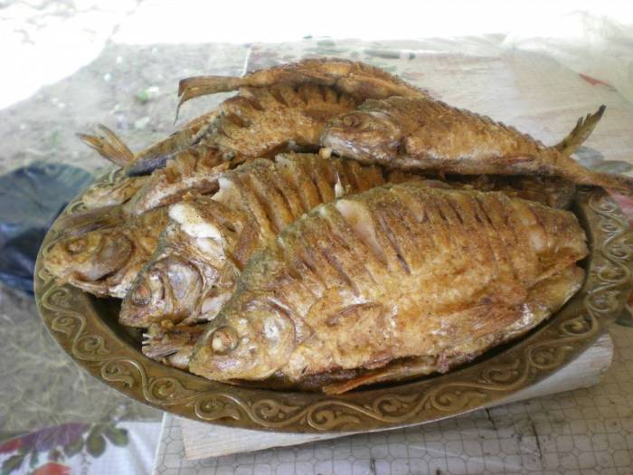 Язь жареный со сметаной и луком