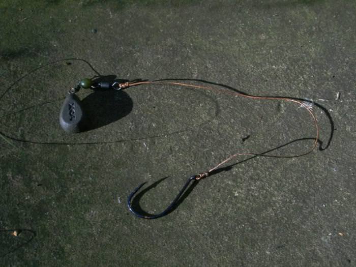 В результате, в систему оснастки была добавлена страховочная леска, которая вязалась непосредственно к грузилу и позволяла в случае обрыва спасти грузило. Снасть была немного громоздкой, была сложна при забросе и занимала много места на берегу.