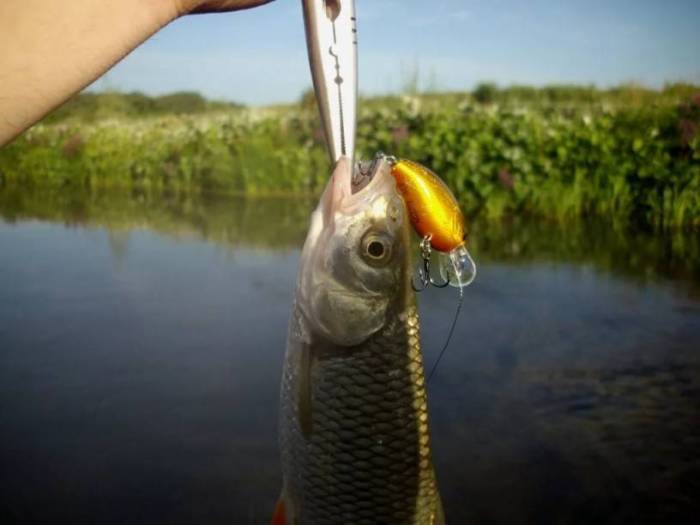 Рыба отдает предпочтение коротким объемным приманкам с активной анимацией (кренк). Воблеры на голавля класса минноу не так эффективны, вообще не рекомендуется использование шедов.