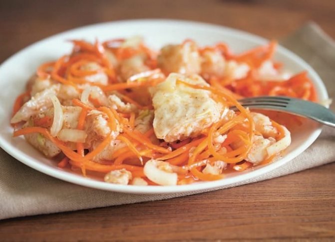На ура уходит не только сама рыбка, но и овощи, с которыми она мариновалась.
