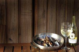 Именно поэтому Шардоне идеально подходит по своим характеристикам. Изысканная сладость и вкус ванили отлично дополняют нежные сорта. Креветки и мидии хорошо сочетаются с белыми сортами столовых вин. Вкус моллюсков раскроется с винами, имеющими ореховые нотки — мадера, херес.