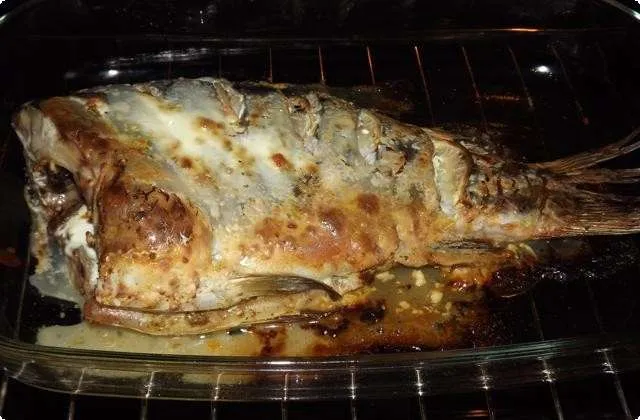 При таком способе приготовления запеченный в сметане карп получается хрустящим.