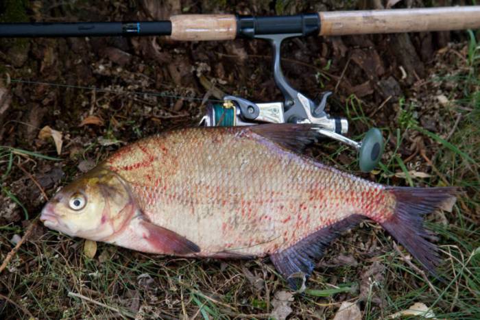 Донными удочками, наживленными пучком навозных или дождевых червей или черной пиявкой, ловят леща в сумерки и ночью, когда он идет с глубин в заливы, на мели и по краю зарослей водорослей на кормежку