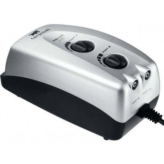 Компрессор APS 300 выпускается германской компанией Tetra Werke. Устройство – двухканальное, но снабжается тройником, при помощи которого можно два канала объединить в один. В комплект также входят 2 крана, которые управляют мощностью воздушного потока. Есть возможность докупить ремонтный комплект именно для этой модели.