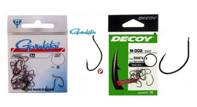 Существуют специальные крючки для фидерной ловли. Они имеют особо изогнутый поддев, например, крючки торговых марок Gamakatsu и Decoy.