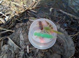 В качестве приманки можно использовать и натуральные наживки: дождевых червей, разделенных пополам, или мотыля.