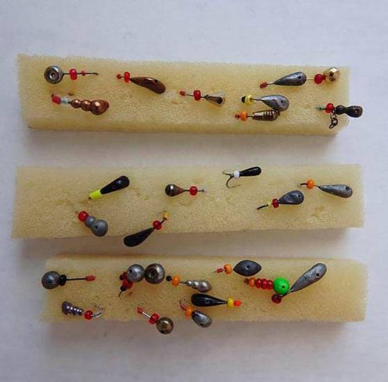 Некоторые рыболовы, на больших глубинах вместо мормышки, на конец лески привязывают обычный свинцовый груз, далее, на основной леске идет гирлянда из мушек на различной глубине.