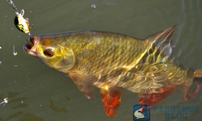 - Красноперку можно очень успешно ловить на спиннинг с прикормкой. Для этого надо просто закормить интересную точку, а потом начинать проводки приманок. Забросы надо делать не на сам стол, а дальше – таким образом, чтобы не пугать рыбу. В октябре, когда рыба становится более хищной, такой подход может быть довольно актуален. Он обеспечивает неплохие уловы и интересную необычную рыбалку.