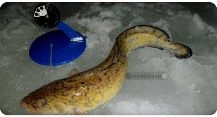 Подслеповатый налим не слишком требователен к маскировке оснастки.
