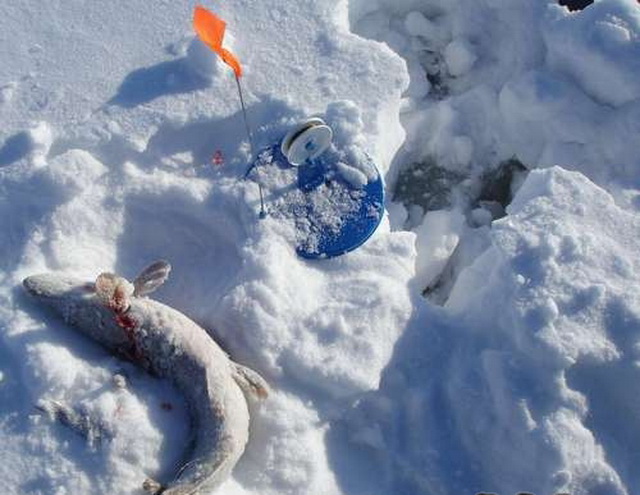 - На рыбалке лучше использовать жерлицы. С ними можно проводить различные комбинации. Когда срабатывают флажки на жерлицах, легче определять поклев.