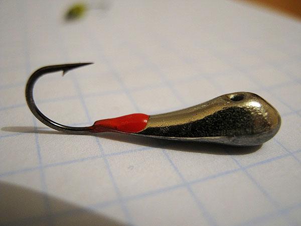 При ловле на безнасадочную мормышку, выше по леске, в сантиметрах 10-15, привязывают обычный крючок с насадкой;