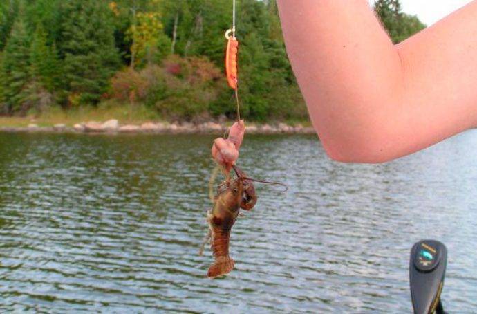 Это интересный, хотя и менее уловистый способ лова раков. Рак может клюнуть на любую наживку, но больше он отдает предпочтение животной, но слегка испорченной пище, хотя не брезгует и традиционными наживками, вроде навозного червя. В качестве наживки можно использовать слегка протухшую, подсушенную на солнце рыбу. Это может быть синец или другая не большая рыбка. Насаживается приманка на крючок любым доступным способом. Вообще-то можно обойтись и без крючка, а вместо удочки использовать обычную палку. Кроме этого, вместо лески можно привязать к палке обычный шнур. Дело в том, что рак цепляется за наживку клешнями и его можно спокойно, без излишней суеты, вытащить из воды. Некоторые «раколовы» применяют вместо обычного крючка тройники, тогда у рака нет шансов сойти, если он зацепился за наживку.