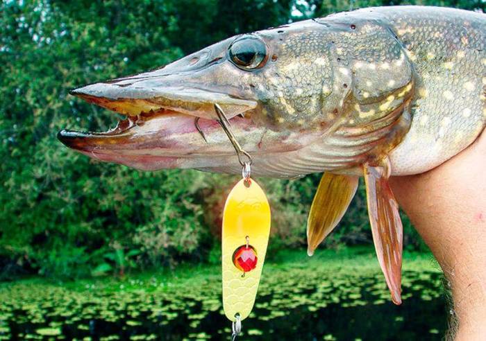 Чтобы ловля щуки на блесну была успешной, подбирайте ее в соответствии с условиями ловли — глубина, течение, особенности водоёма и т.п.