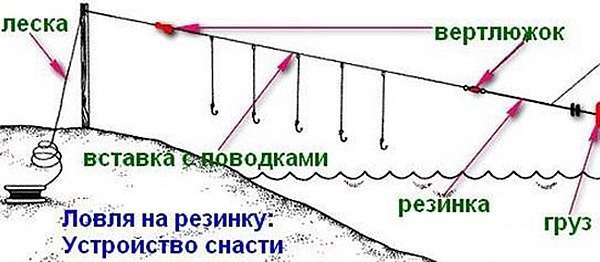 Донка с резинкой лучше проявляет себя в стоячей воде и на медленном течении. Эта снасть крайне редко запутывается и позволяет доставить живца в точку ловли без каких-либо повреждений.