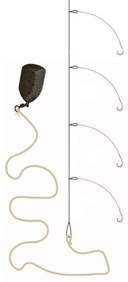 В принципе ее сборка практически полностью аналогична описанным выше модификациям (грузило/металлический поводок/крючок).
