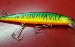 Многим этот воблер известен, в первую очередь, как щучий, и они правы. Часто приходится слышать, как он прекрасно работает при ловле щуки, используя самые разнообразные проводки. И вместе с тем, не просто так он упомянут в этой статье. Мне неизвестно, за счет ли своей упористости которая способствует отличной амплитудной игре, за счет шумового эффекта или чего-то другого, но порой при ночной ловле судака, именно он “выстреливал” и проявлял себя лучше многих других. Самой эффективной, применительно к условиям ночной ловли судака, была отмечена проводка этакими мягкими потягиваниями. Эксперементируя с этими потягиваниями, удавалось добиться от этого воблера просто отличных результатов.