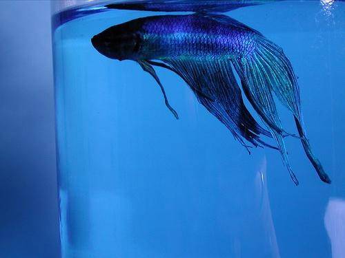 - окрашивание грунта и стенок аквариума в синий оттенок;