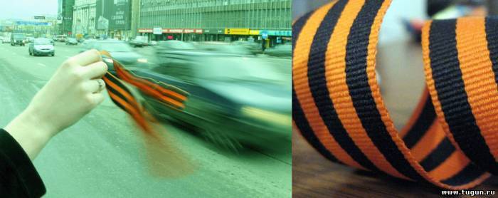Тело изготовляется из георгиевской ленты, которую молодые пионерки обычно бесплатно раздают всем на День Победы 9 мая. Бывает, даже насильно навязывают совместно с сотрудниками ДПС, останавливая проезжающие автомобили, так что тут можно одновременно убить два зайца.