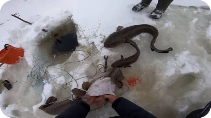Пойманная рыба сильно не сопротивляется и тянуть ее к берегу не составляет труда. Но не стоит расслабляться, налим все же может попытаться сорваться.