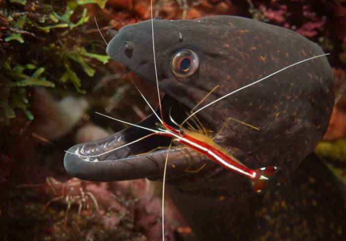 Ещё одна интересная особенность — симбиоз гигантской мурены с морским окунем.