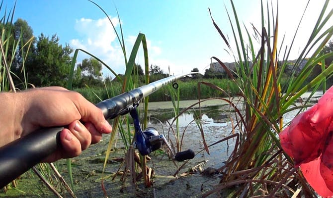 Лучше всего использовать удочку среднего заброса с леской толщиной до 0,2 мм. Ориентироваться необходимо на места с камышами, кувшинками и забрасывать удочку чуть поодаль растительности или между кувшинками.